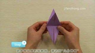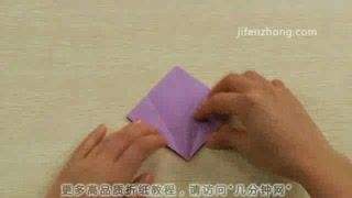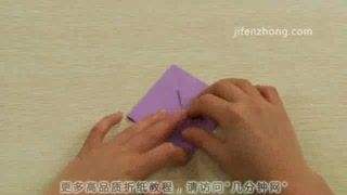 2把左边上层的角向右边折,留下折痕再翻回来,把下面的两条边沿折痕向内侧折,留下折痕,打开,把下面的角向上打开,两侧沿折痕向内折,向上压平,成为这个形状。背面同法折。