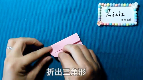 将纸折成三角形。
