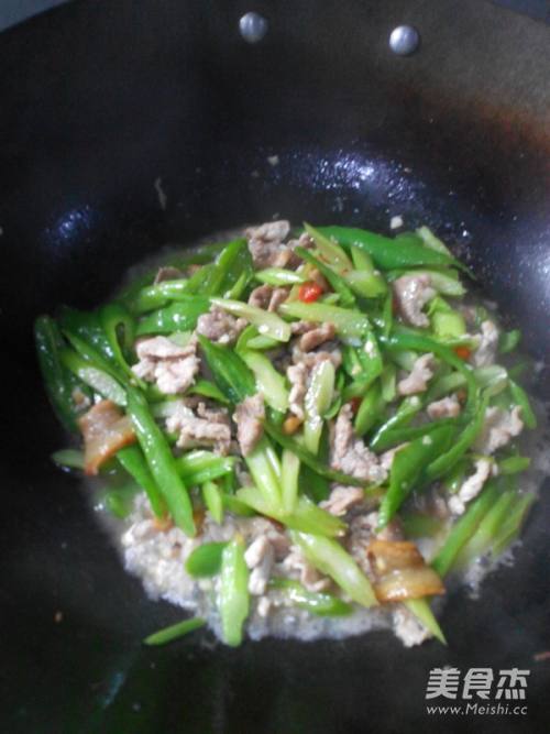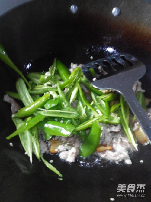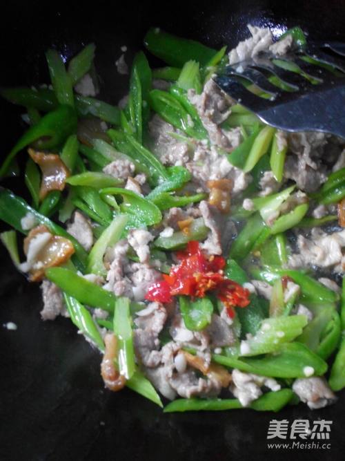 5加入辣椒后翻炒10秒。