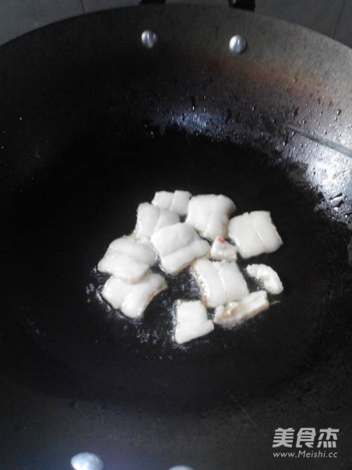 2锅烧至7成热,加入肥肉,炸至金黄色。