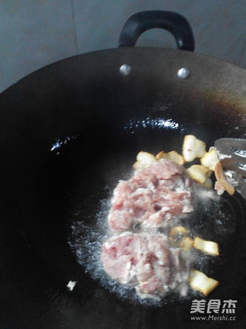 3加入瘦肉翻炒