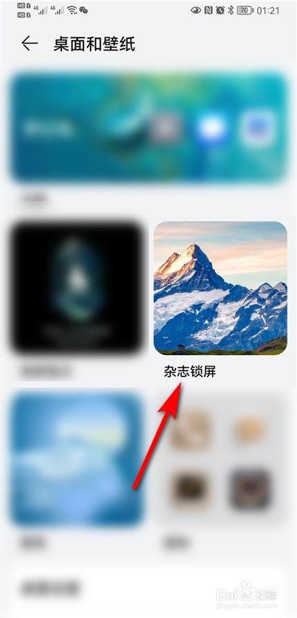 进入桌面和壁纸页面,点击杂志锁屏。
