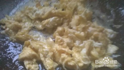 把鸡蛋放入油中炒成块状。盛出来。