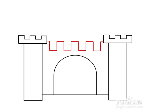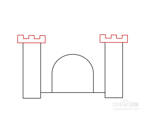 给两座塔楼顶部画上城垛,注意两边要对称。