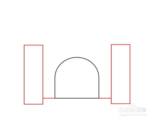 在大门两侧各画一个长方形的塔楼,塔楼与大门之间用横线相连。
