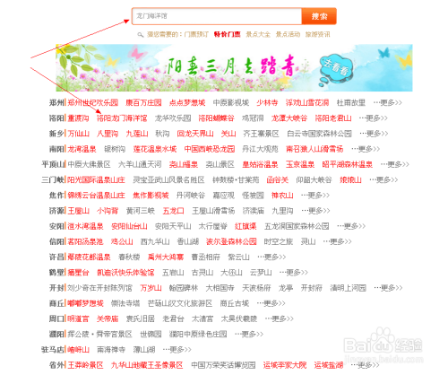 百度搜索“媚游中原”跳转页面后可输入龙门海洋馆进行查找