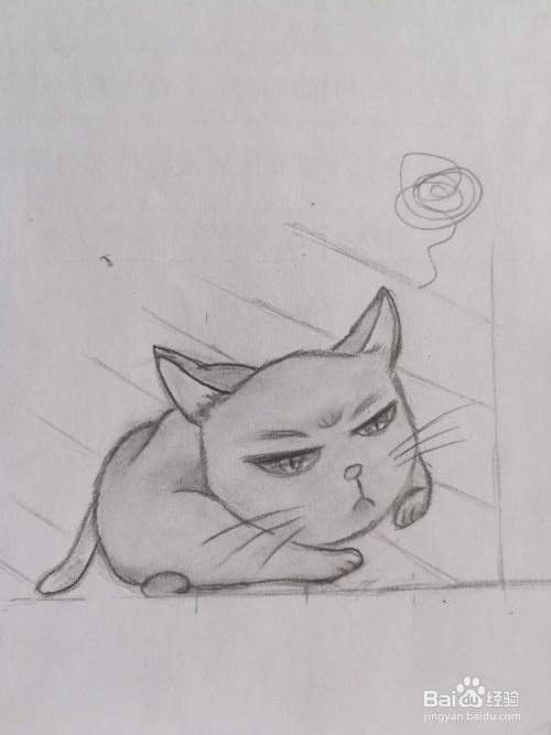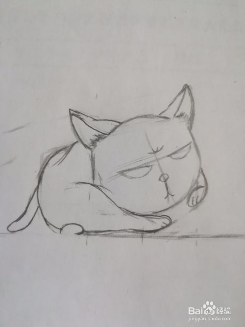 接下来就是在大致的形状上画它的具体细节。要表现傲娇,表情特别重要,所以一定要刻画好面部表情。