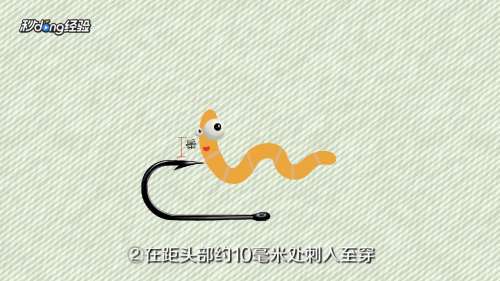 3去头挂尾。从蚓环以下按需要长短掐断,一般以两倍钩体长为宜,再从断面穿入,多余部分挂于钩尖外,尾端不停地蠕动。