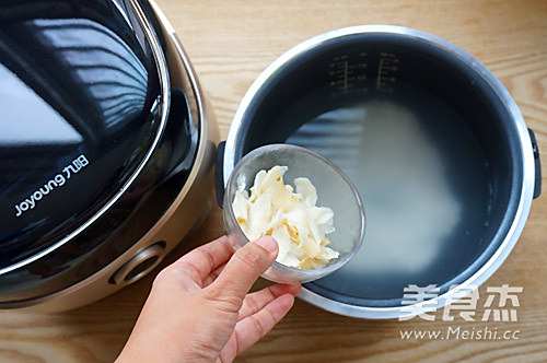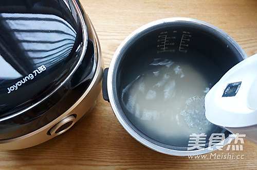 3大米洗净后放入内胆,添水至煮粥对应的水位线。