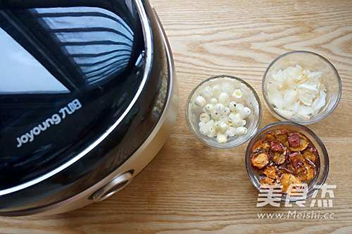 2将山楂洗净,莲子浸泡去芯,百合洗净浸泡。