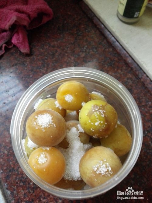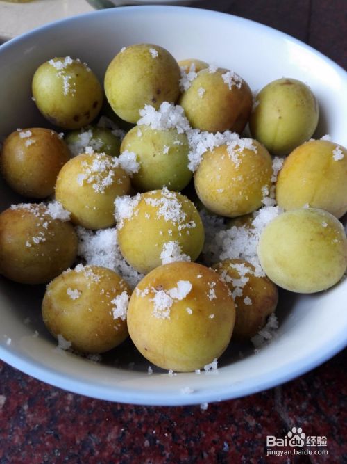 在晾干的青梅上撒大量盐腌制,过两个小时看到出水,表皮也变皱后,则加水淹过青梅,并放在阴凉处放上一天。