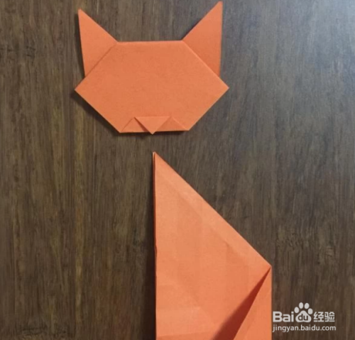 再把背面翻到前面来,把下面的三角尖角向上折,使猫咪的脸蛋从锥子脸变成方脸。