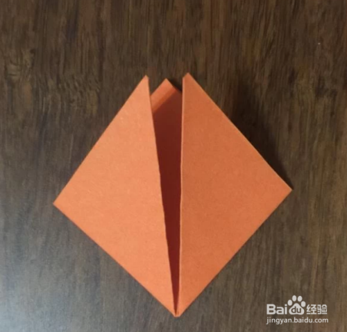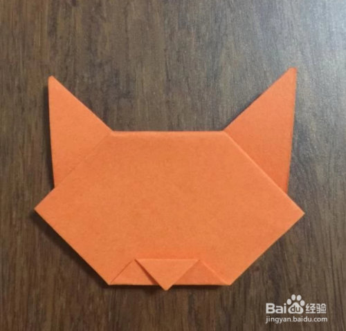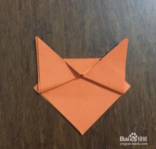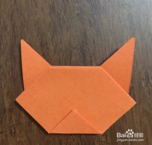 旋转180度,使刚刚的那两个小顶角朝上,这两个小顶角是猫的耳朵,然后将两个小顶角之间的小三角形折下去。