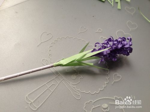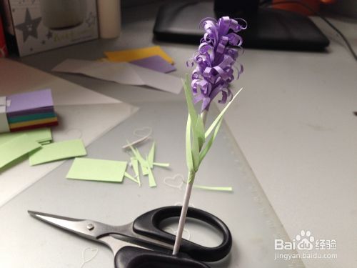 最后粘上刚才剪好的叶子。小巧玲珑的风信子就做好了。你学会了吗