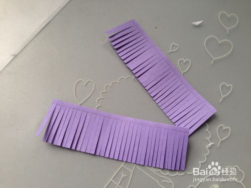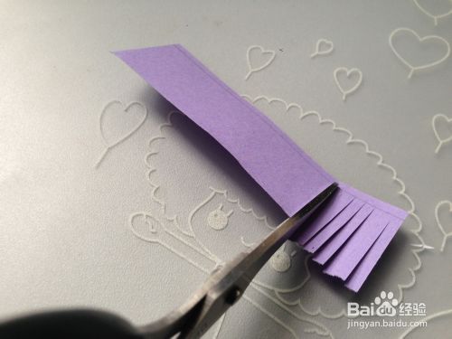 用剪刀将宽边剪成宽窄均匀的小条,一直剪到刚刚画的线。