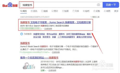在此我以“鸠摩搜书”为例进行讲解,先在百度首页搜索“鸠摩搜书”,打开搜索结果的第一条。