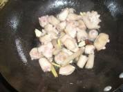 锅烧热放油,将生姜扁香,再放入猪尾。