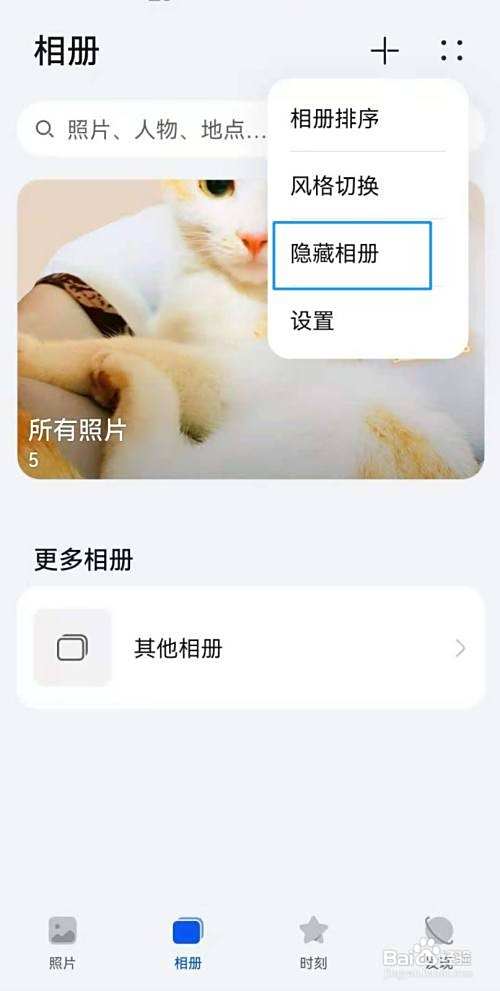 弹出下拉框——选择【隐藏相册】选项