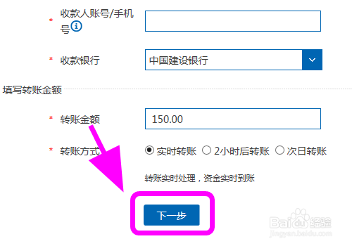跳转转账功能,输入【收款人、账号、金额】等信息;