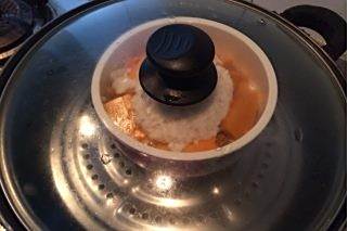 酒酿与酒酿汁一同倒入蒸碗,放入几粒枸杞
