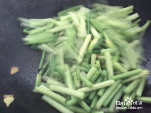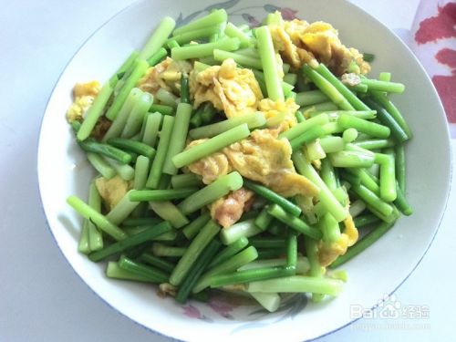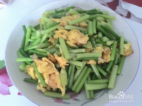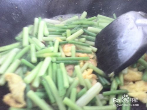 炒至蒜毫断生加入鸡蛋,翻炒一会儿即可。