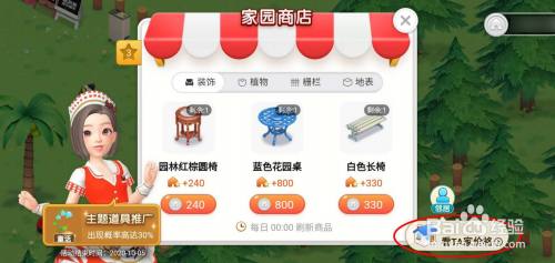 进入邻居家园,选择商店打开,如果看到有童话、主题道具字样的商品,那就可以选择购买了,如果还是没有,接着逛其他邻居的商店;