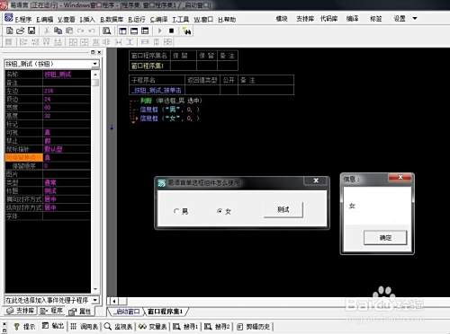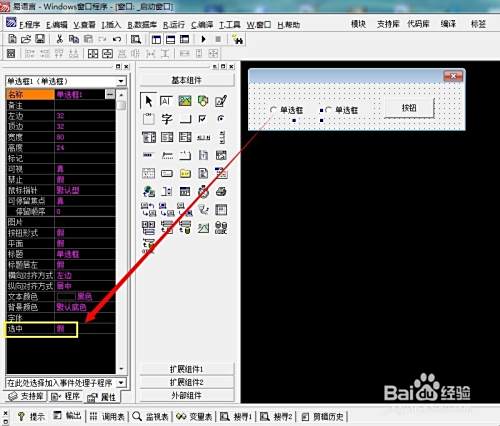 编写程序代码,这里简单演示一下,单选框组件的选中属性。如图:
