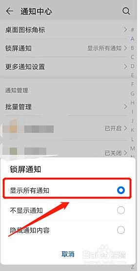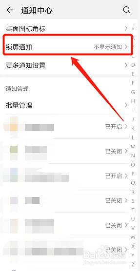 进入到通知中心页面后点击锁屏通知。