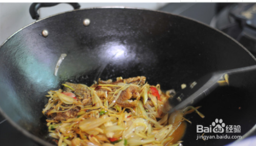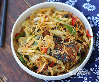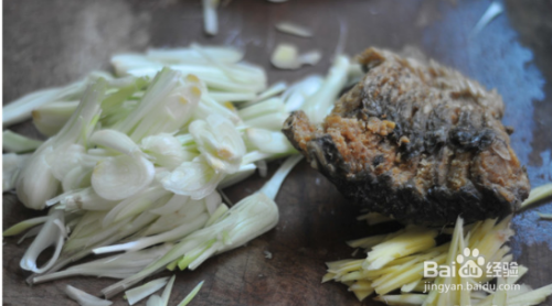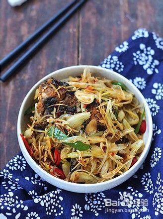 油锅烧热,干鱼倒进去略微翻炒,加入藠头,微炒
