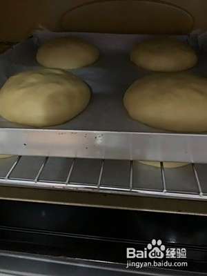 盖保鲜膜发酵至两倍大(手指沾面粉插入面团,小孔不反弹);
