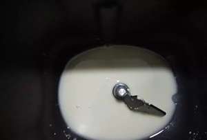 面包桶里放入牛奶或者水和酵母,用筷子搅拌至酵母融化;
