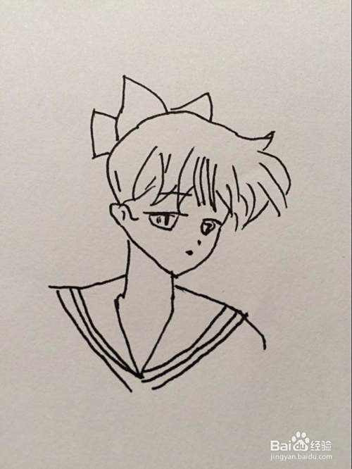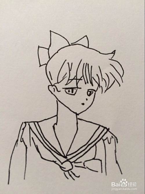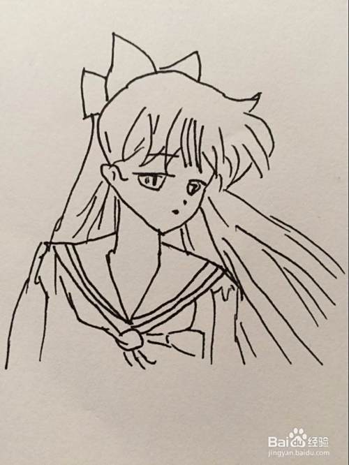 最后画出美少女战士飘逸的长发;动漫美少女战士简笔画就完成了,最后可以填上自己喜欢的颜色。