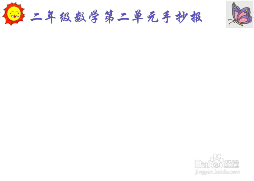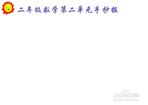 1绘制一个好看的画板,作为手抄报的底板,然后,在工整的白纸中间写上标题:"二年级数学第二单元手抄报"