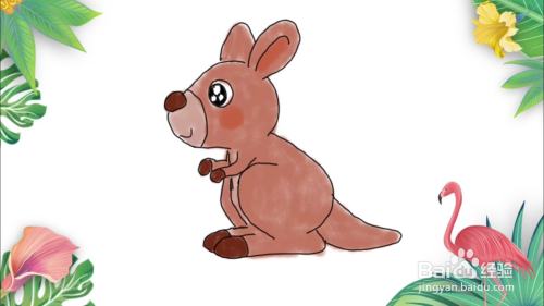 我们给袋鼠涂上颜色,这幅可爱的袋鼠简笔画就画好了。