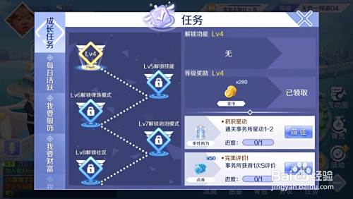 第二种就是完成成长任务,每升到一个新等级都会收到一个金币的奖励。