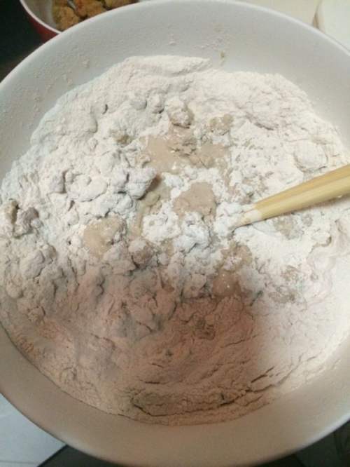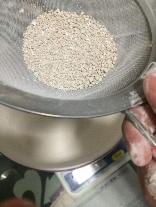 1纯正的山芋粉因为农家制作工艺有限,颗粒不会很均匀,我用西点的方法将它筛过,粗颗粒捻细,这样成品不会有生面疙瘩。
