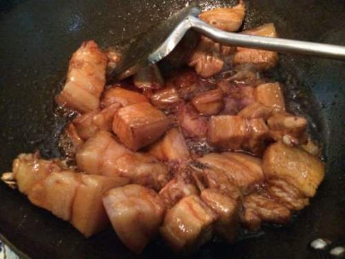 9冰糖颜色呈焦褐色,且泛小泡泡时,表明已经熬好。