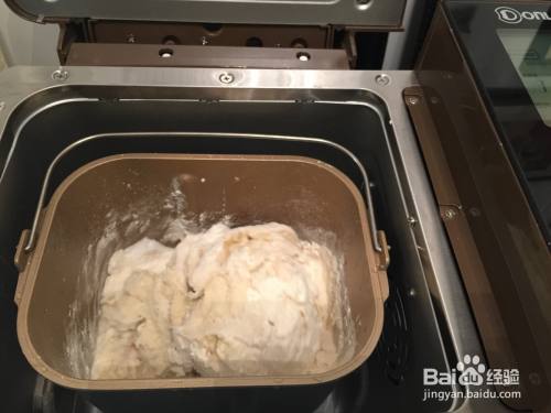中种面团切成小块,和主面团材料(红曲、抹茶除外)放入面包机,启动和面程序
