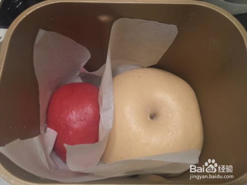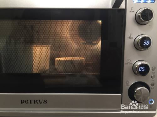 放入烤箱启动发酵功能进行二发(38度50分钟,旁边放一碗热水)