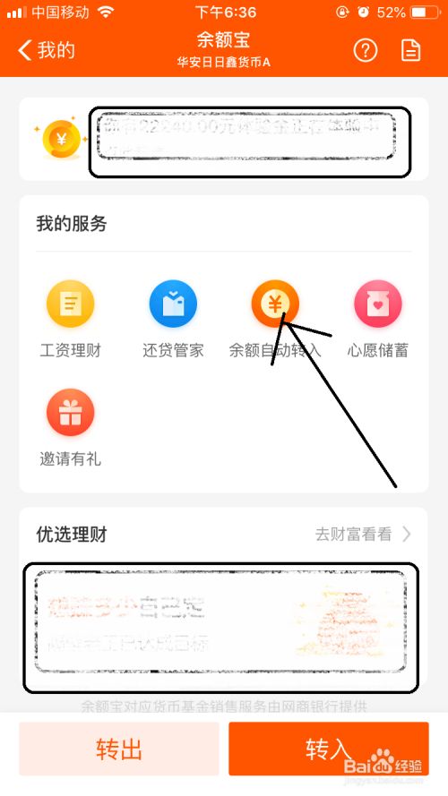 然后打开“余额宝”界面下点击“余额自动转入”工具。
