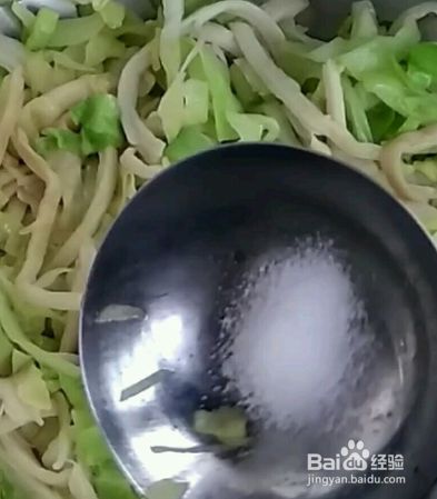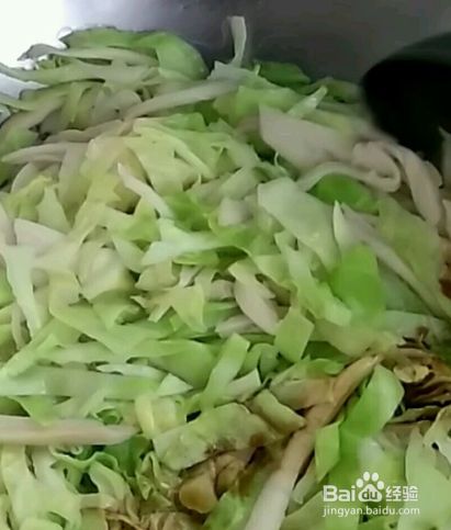起油锅,葱姜入锅煸香后杏鲍菇、圆白菜入锅炒