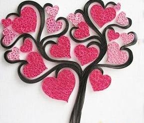 极其抢眼醒目的心形卷纸花树贺卡制作完成