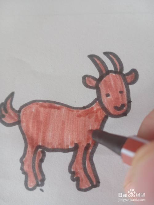 把山羊的身体和前蹄,后腿以及尾巴涂成棕色。