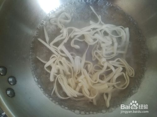 煮锅里放多半锅水,大火把水烧开,把做好的面条下入锅内,煮制2分钟,大概水开后,滚上两滚就可以了。