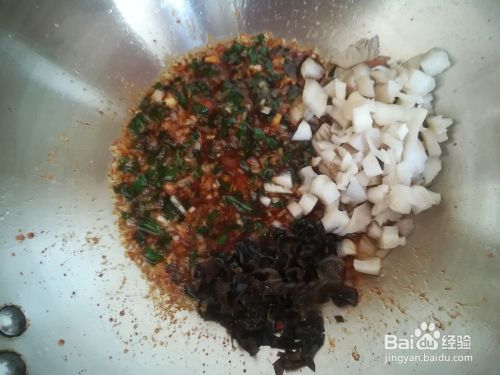 炒匀后,加1大汤勺开水,水烧开后,将水淀粉,沿锅边慢慢倒入勾芡,汤汁稍显浓稠时,关火即可。这样卤子就做好了,盛出放入一个大碗里备用。