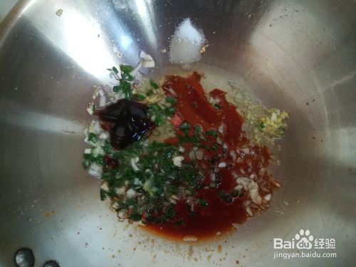 炒锅里余油,再次加热后,倒入葱姜蒜末煸香,加1小勺盐,2勺味极鲜酱油,1勺蚝油拌匀调味。