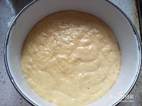 找一个平底的容器,底部抹油,把面糊导入容器中,面上抹平