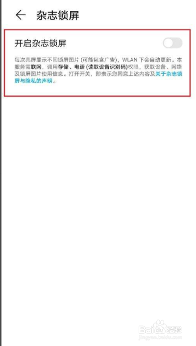 点击关闭开启杂志锁屏,弹出框之后,点击关闭