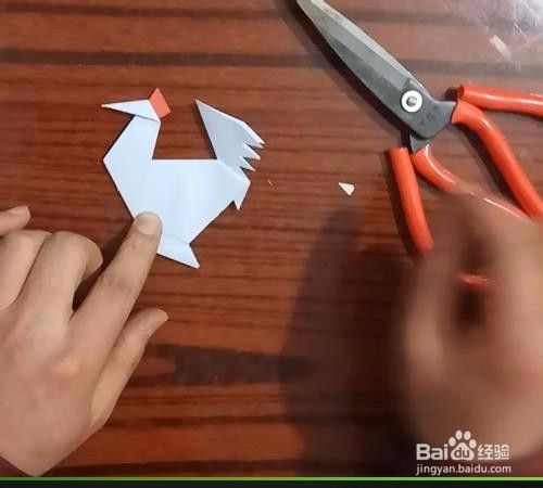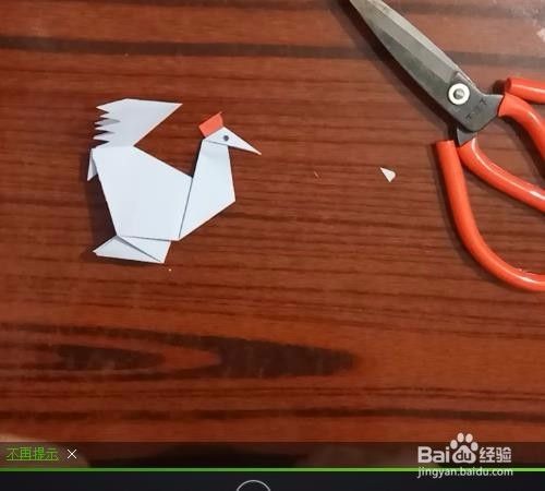 找一小块红纸剪一个小三角并且把它粘到鸡冠的位置。