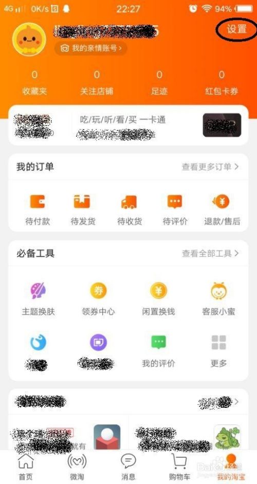 登录到我们的手机淘宝账户,在右上角的可以找到“设置”,
